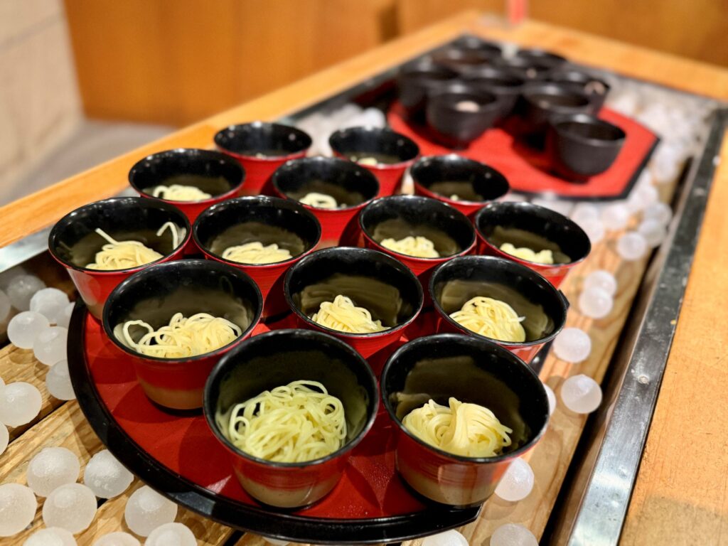 今年の夏から夕食のかまどビュッフェに加わった「冷たいラーメン」と「蔵王そば」のコーナー!
