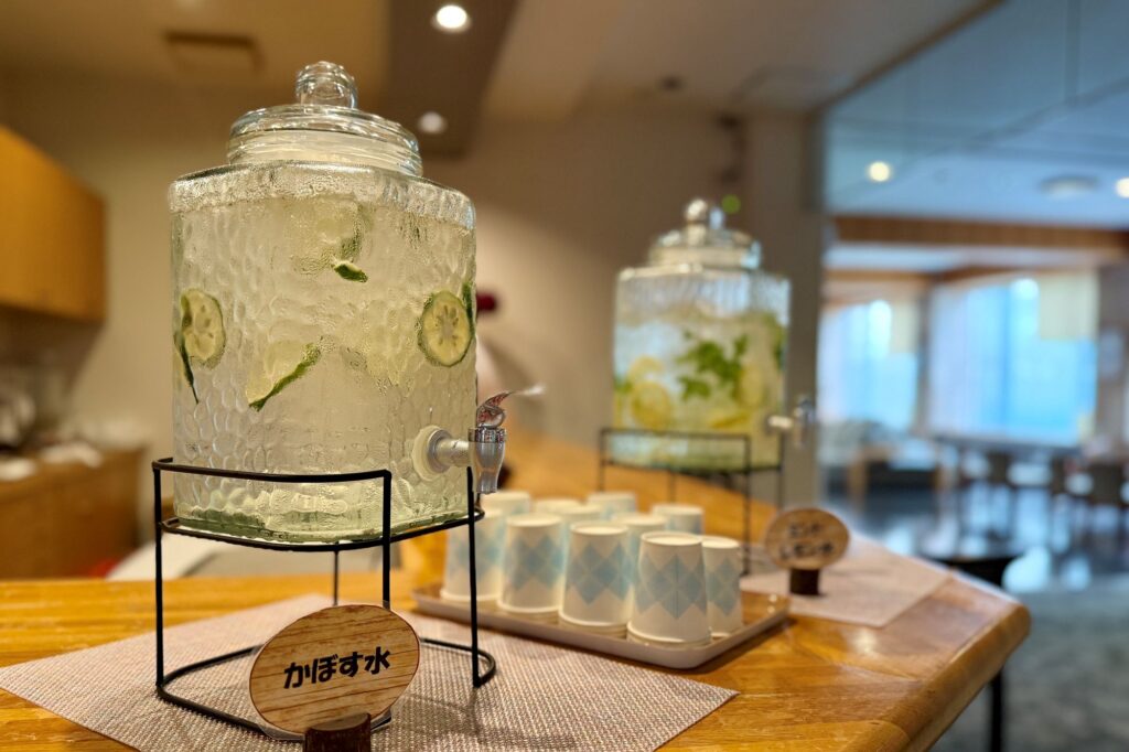 ラウンジのカウンターにご用意しておりますので、到着時のひと息や滞在中の水分補給にぜひお楽しみください。